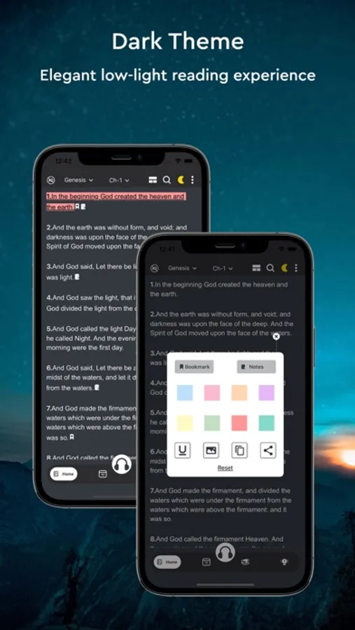 # Night mode: Night reading mode to facilitate reading the Bible at night.