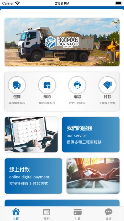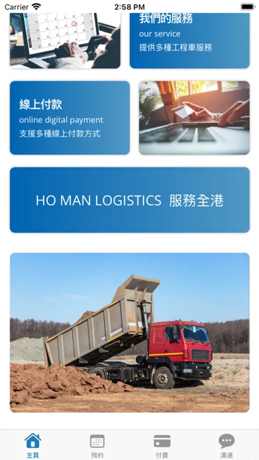 本應用程式的建立旨在方便客戶可快速獲取各類工程車服務,快速預約獲取我們的服務,更好的服務全港客戶