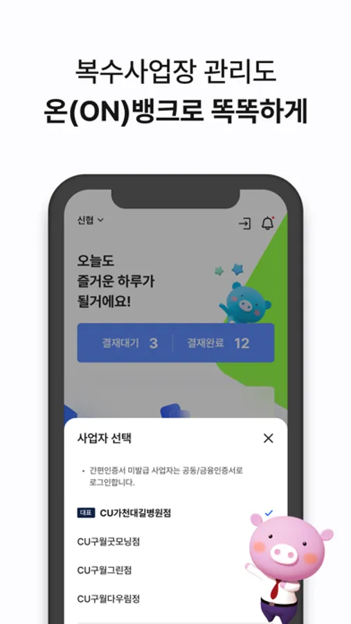 사장님도, 직원도 모두 편리한 "신협 온(ON)뱅크 기업" 지금 설치해보세요 !