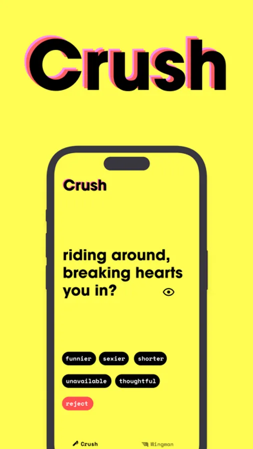 In an unhinged world, an app that matches its unpredictability is exactly what you need. Crush AI, our unhinged app, embraces the unexpected and injects it into your conversations, making them far more lively and exciting. It understands the intricate dynamics of your romantic dialogues and crafts irresistible replies that can't help but captivate.