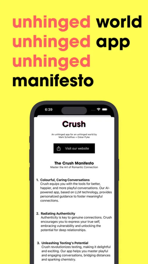 So, when words don't come easy, Crush it! With Crush AI, you'll do more than just chat - you'll enchant. Revitalize your texting game and keep the sparks alive. Download now and start turning casual chats into magical dialogues.