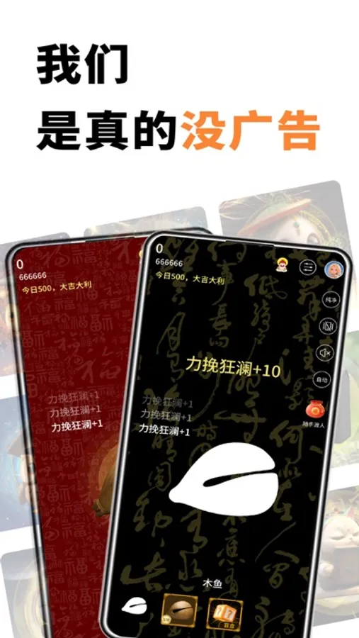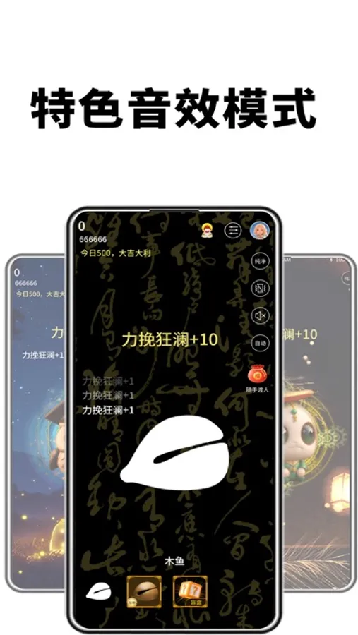 特色功能:背景音乐伴奏每个木鱼都伴有与之匹配的BGM,敲击搭配一起播放,我直呼:泰裤辣!!