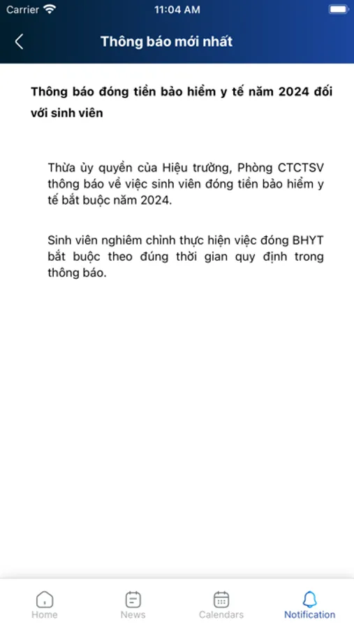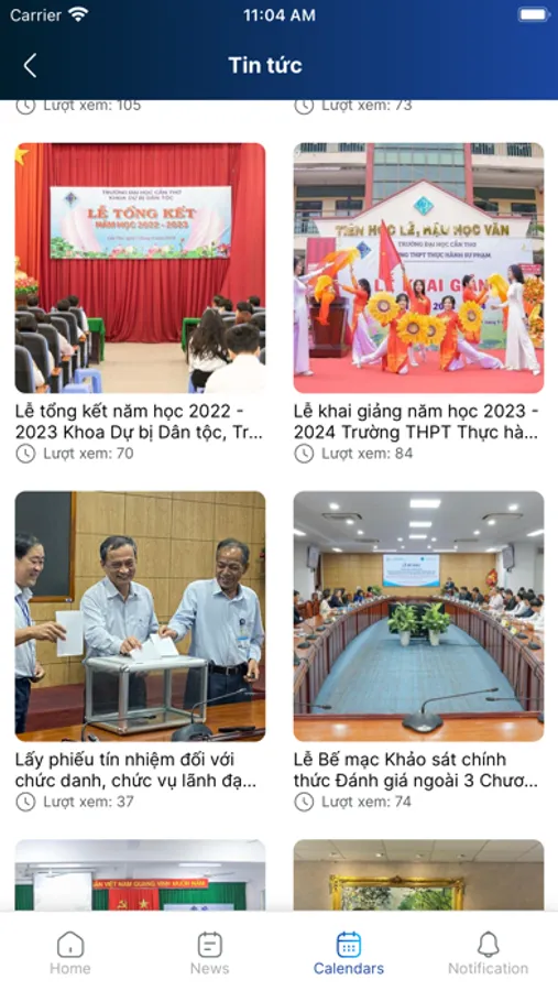 Ứng dụng hỗ trợ nhận tin tức, thông báo từ nhà trường, xem lịch