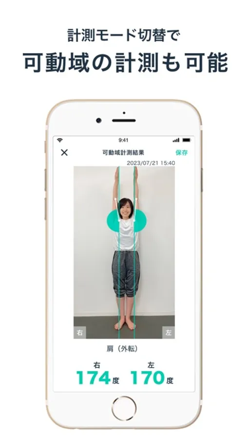 両肩(外転)、右肩(屈曲)、右肩(伸展)の可動域測定ができます。