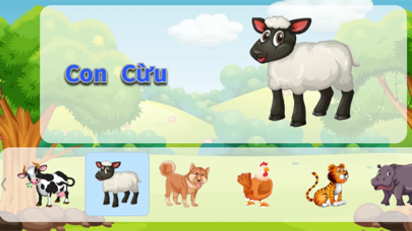 + Học tên các con vật, có kèm tiếng kêu sinh động.
