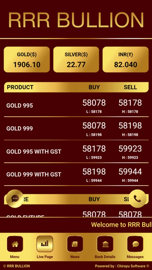 Our app shows the fastest updated LIVE RATES of gold.
