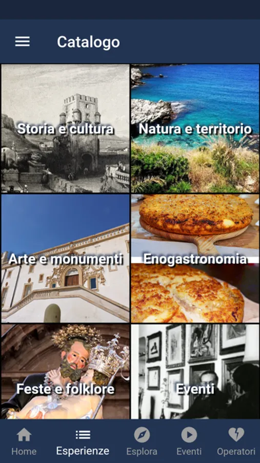 • ESPERIENZE: Sfoglia il catalogo tematico completo di indicazioni utili e contatti e scegli cosa visitare, dove soggiornare e dove assaggiare i prodotti tipici.