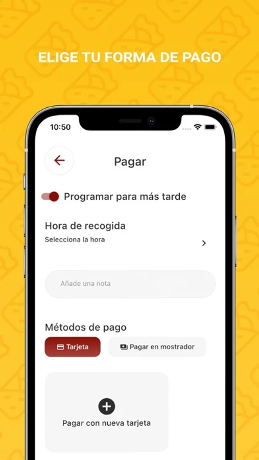 Podrás seguir tu pedido en tiempo real y te avisaremos cuando esté listo. Y si te encuentras en el restaurante, olvídate de esos tiempos de espera mientras el camarero te trae la cuenta. ¡Podrás pagar tu pedido desde tu propio móvil!