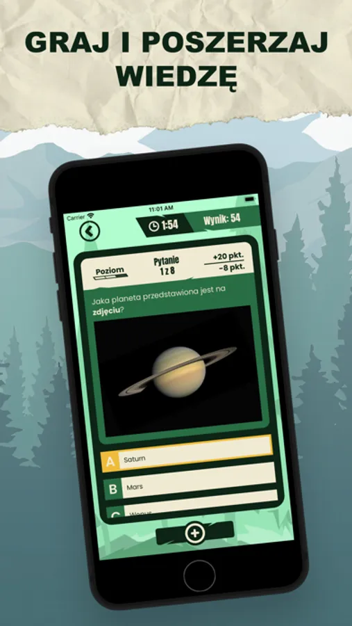 W czasie quizu zdobywasz punkty za udzielenie poprawnej odpowiedzi i rywalizujesz ze znajomymi. W tabeli wyników quizu liczy się tylko Twój najwyższy wynik w danym miesiącu, więc możesz rozwiązywać quiz tyle razy ile chcesz w dowolnym miejscu i czasie, wystarczy, że masz połączenie z internetem!