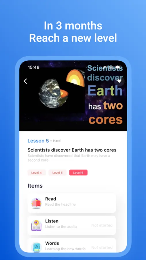 Take your English skills to the next level with the 7levels English app! Our lessons are organized into 7 levels, from beginner to advanced, to help you systematically improve your English. Learn with a variety of materials including news articles, short stories, conversations and more. Our AI tools provide pronunciation corrections for speaking practice, listen and repeat for building listening skills, and writing analysis for improving your writing. Personalized self-study plans adjust to your goals and current abilities. Track your progress as you advance through the levels. 7levels English gives you all the tools you need to become fluent in English!