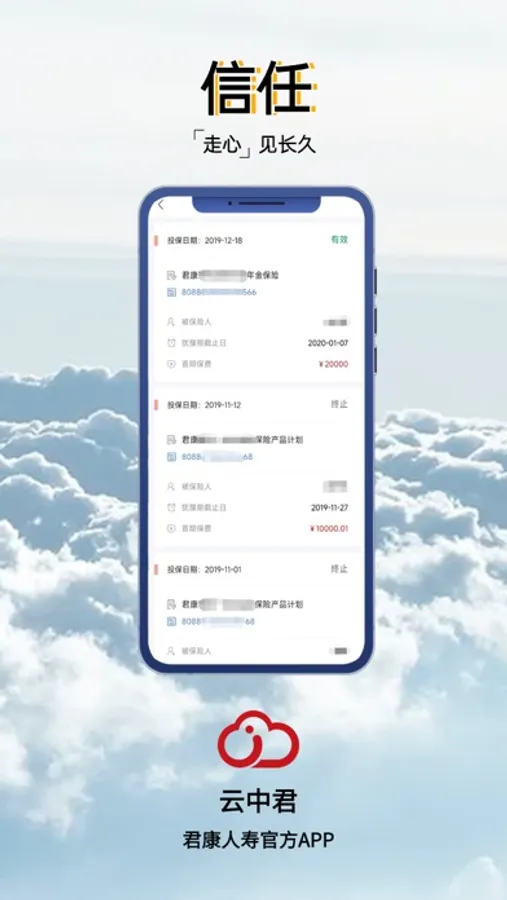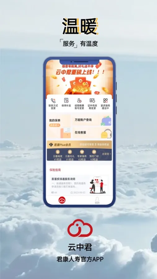 “云中君”APP是君康人寿精心打造的一款全面的保险生活数字服务平台。