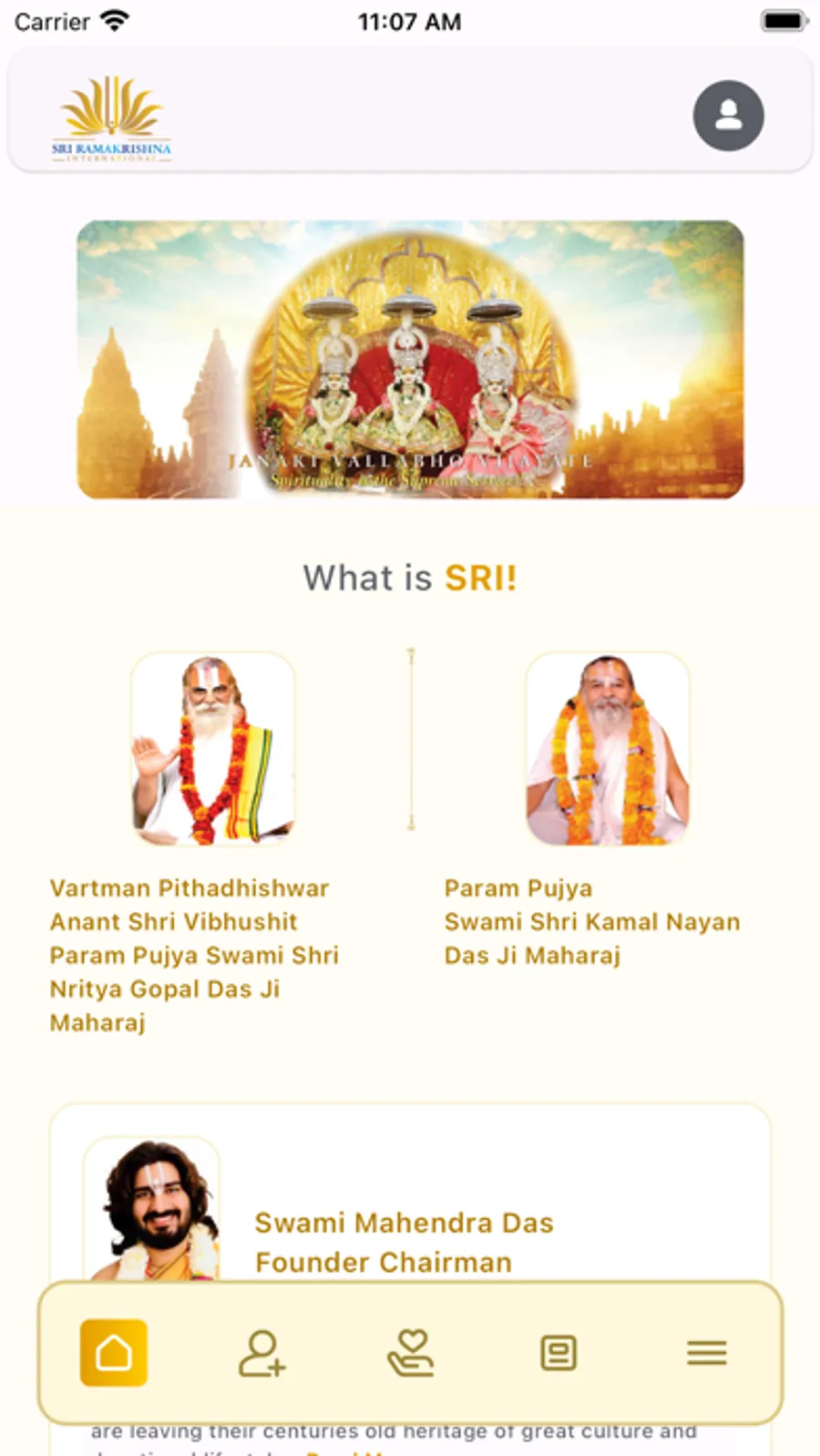 SRI, Sri Ramakrishna International is set up to bring glories to our legacy of matchless educational system, to help the masses to uplift spiritually, reinstate spiritual practices in the society to purify body, mind and soul and surrender oneself to the God and his true disciples. Swami Mahendra Das ji, Founder Chairman of SRI is leading the guidelines of Shri Ramanand Sampradaya under the direction of Param Pujya Swami Shri Kamal Nayan Das Maharaj, Successor of Shri Maniram Das Chhawni ,Shri Ayodhya ji. Swami Shri Kamal Nayan Das ji is the disciple of Vartmaan Pithadhishwar Anant Shri Vibhushit Param Pujya Swami Shri Nritya Gopal Das ji Maharaj.