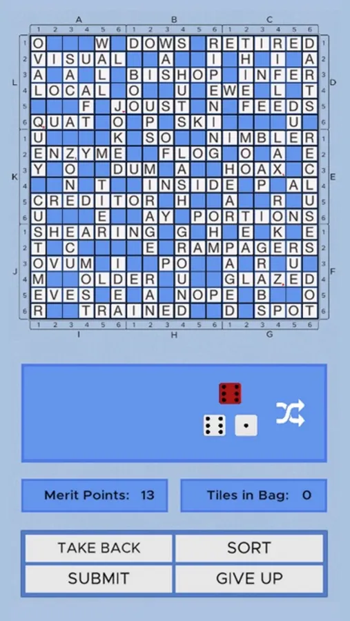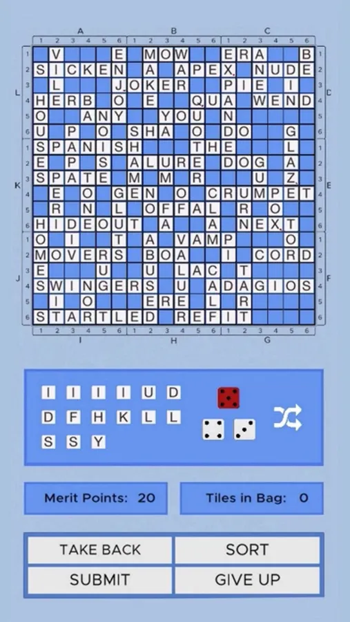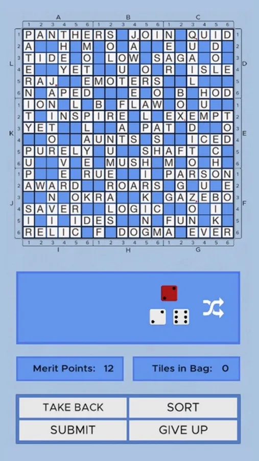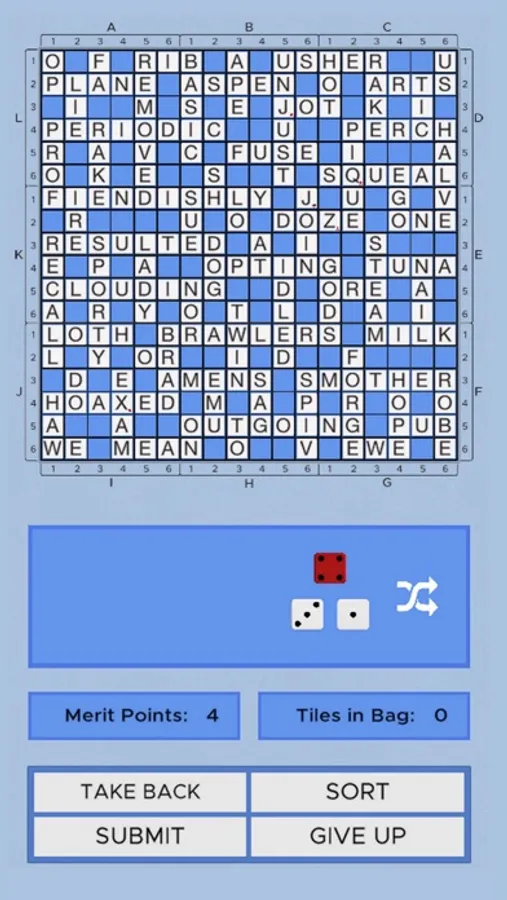 For each draw of letters, the computer rolls the dice, adds them up, and picks the equivalent amount of letters. Play your words then SUBMIT!