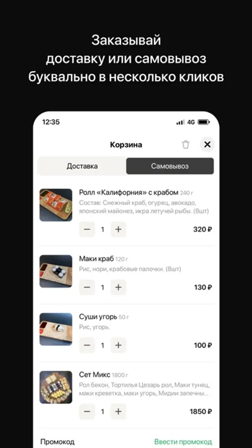 — Сделать заказ быстро и с мгновенным подтверждением через приложение;