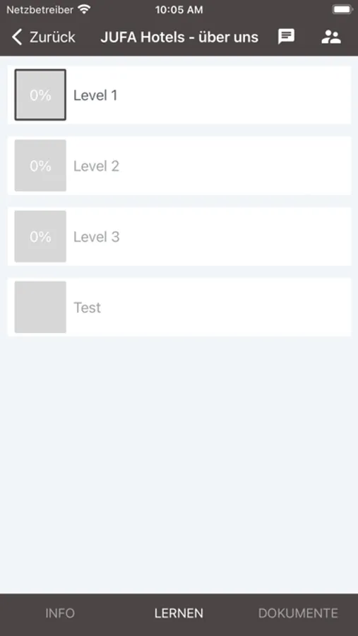 Zusätzlich zum klassischen Lernen wird auch Level-Lernen angeboten. Im Level-Lernen werden die Fragen vom System in drei Levels gegliedert und im Zufallsprinzip abgefragt. Zwischen den einzelnen Levels gibt es eine Verschnaufpause, um den Inhalt bestmöglich zu speichern. Dies ist notwendig, um einen nachhaltigen Wissenserwerb zu erzielen. Ein Abschlusstest macht den Lernfortschritt sichtbar und zeigt, wo mögliche Defizite liegen und gegebenenfalls noch eine Wiederholung sinnvoll ist.