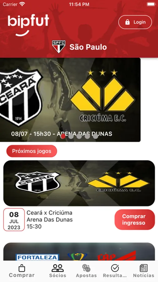 O aplicativo é rápido, leve e permite que você navegue, compre ingressos de forma ágil e eficiente. Ele tem a segurança de seus dados serem criptografados para exibir seus ingressos com total privacidade de dados. Com ele você não fica perdendo tempo em filas e aproveita o melhor do seu evento. Com a leitura facial do BipFut você é o caminho.