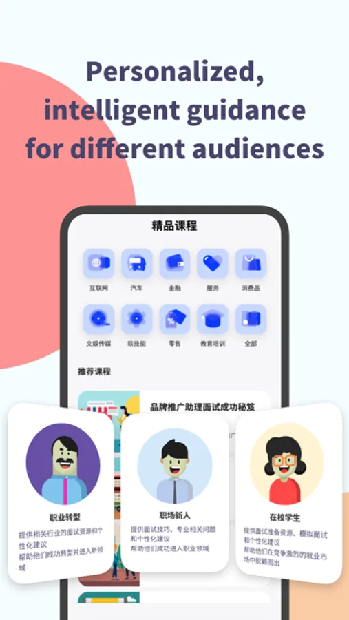 1.Provide detailed interview preparation guides, including frequently asked questions, industry trends and professional-related questions, to help learn how to answer interview questions and exercise professionalism.