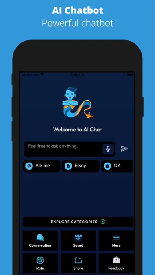 Welcome to AI Chat Bot powered by AI Chatbot, the ultimate language AI assistant that can assist you in almost any area of your life. Whether you're a student, a professional, or just someone who wants to chat, Just ask AI Chat! AI Chat backed by AI Chatbot and GPT technology is here to help you.