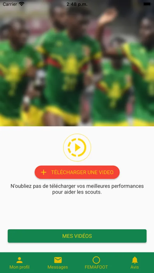 Avec cette application, vous pouvez vous inscrire en tant que joueur à la Fédération malienne de football, avec vos données de profil en tant que joueur et vos compétences sportives.