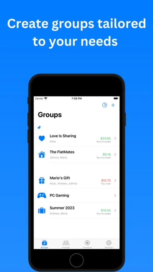 Invite your friends to join your groups manually or through your contact list. Easily connect with your social circle and start managing expenses together.