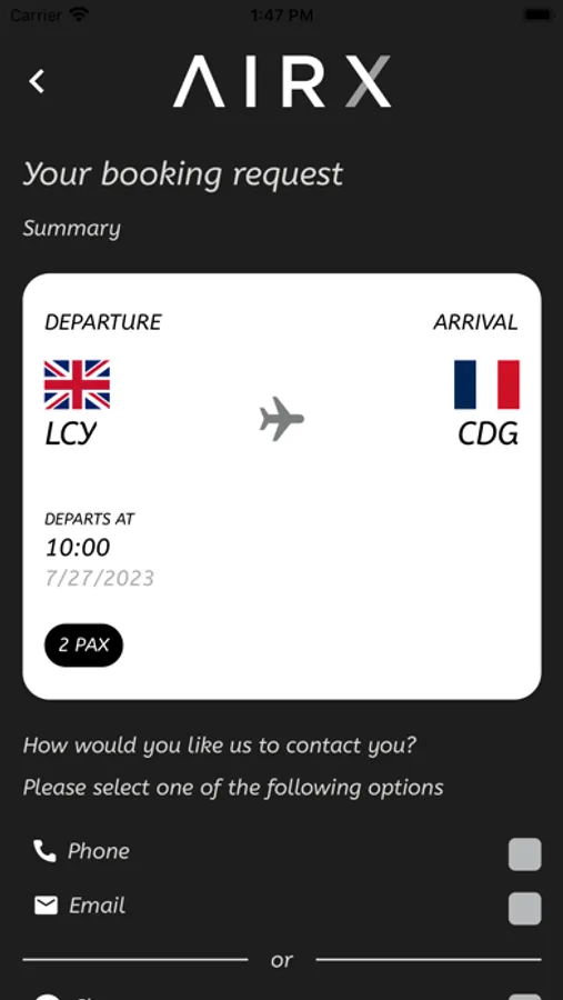 Live Concierge Service: AirX offers the unique feature of connecting you with a dedicated concierge team. If you require assistance during the booking process or have any jet charter or live rate queries, you can initiate a conversation with a knowledgeable member of the team within the app. Your concierge team will provide real-time support and guidance, regarding your next travel experience.