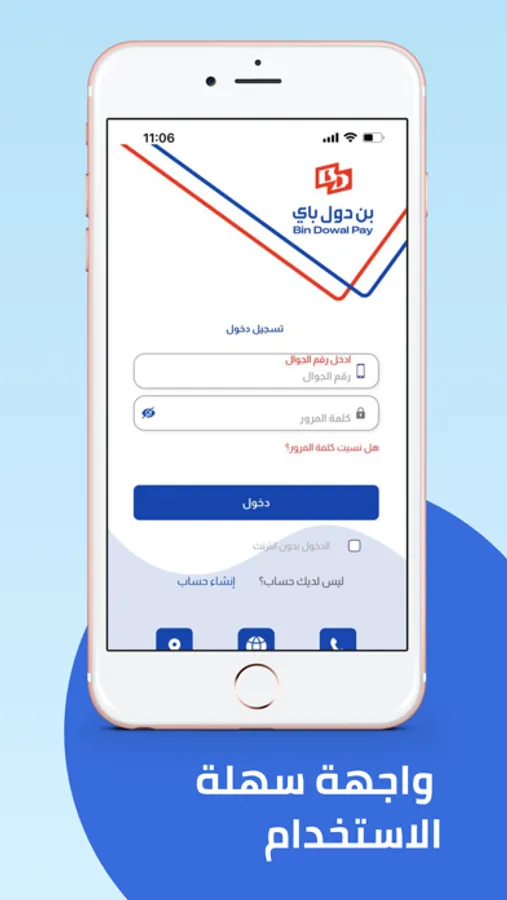 The electronic wallet application (Bin Dowal Pay) is an application to provide electronic cash services at Bin Dowal Islamic Microfinance Bank, which enables you to use your money in financial transactions in an easy, fast and secure manner via your phone and without the need to have a bank account.