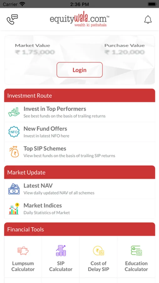 EQUITYWALA is one-stop shopping for all your Wealth Management needs. You can use this state of the art app to stay on top of your Complete Financial Portfolio with all assets: