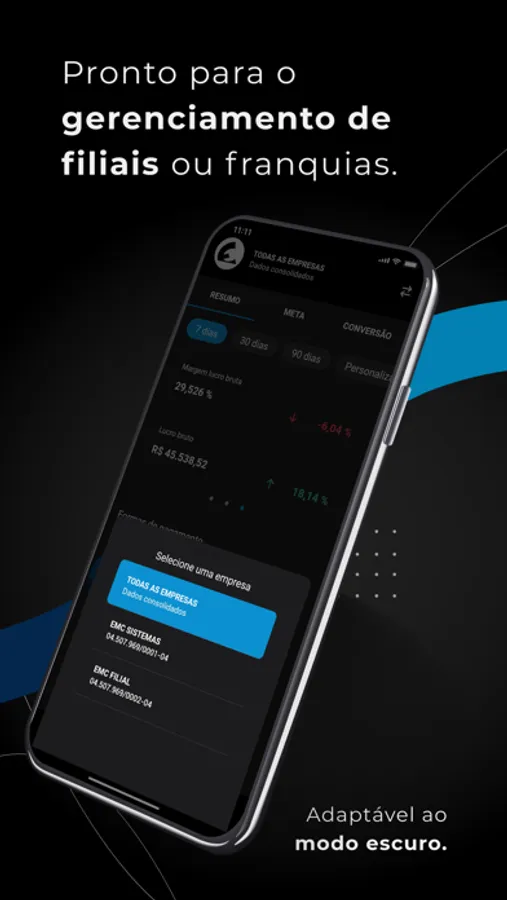 O aplicativo permite ainda a visualização consolidada dos indicadores de várias filiais, proporcionando uma visão completa do desempenho do seu grupo de empresas.