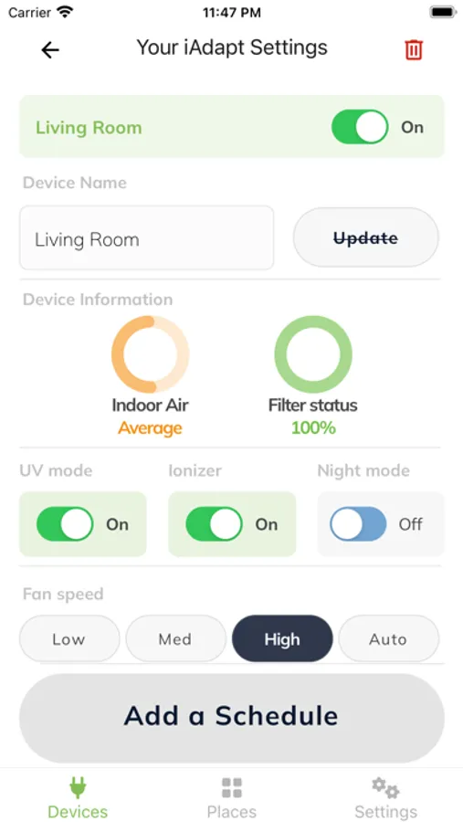 Complete Control: With a few taps, adjust your iAdaptAir's speed settings to suit your preferences and maintain optimal air quality.