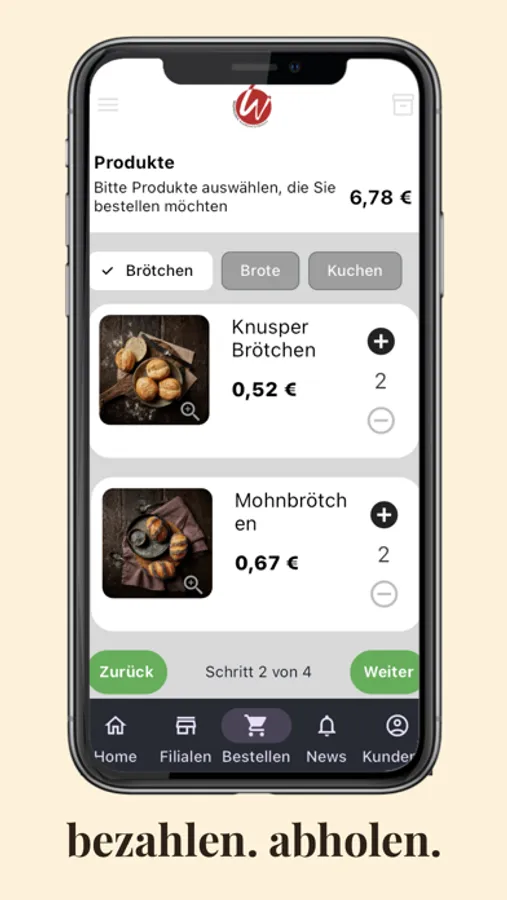 - Backwaren vorbestellen, direkt bezahlen und einfach abholen
