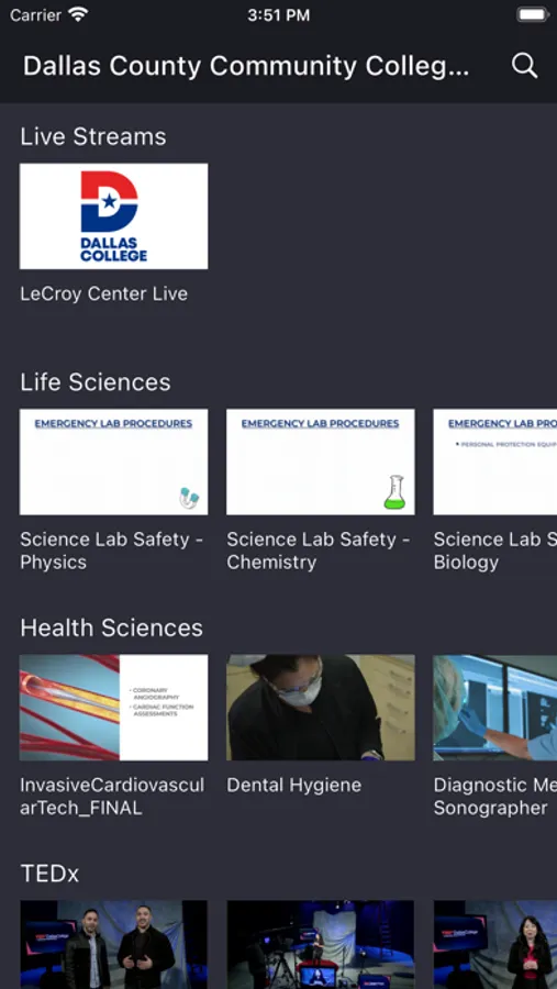 Be part of our community and watch streaming and on-demand programs produced by Dallas College, one of the largest community colleges in Texas. Dallas College TV, or DCTV, features a curated collection of videos for you to explore. Check out many of the programs Dallas College offers. Learn about topics in a wide variety of academic subjects. Watch college events including TEDx talks, theatre and music performances, student-produced programming, and engaging panel discussions. See how we are making a difference for students, employees, and in our communities.