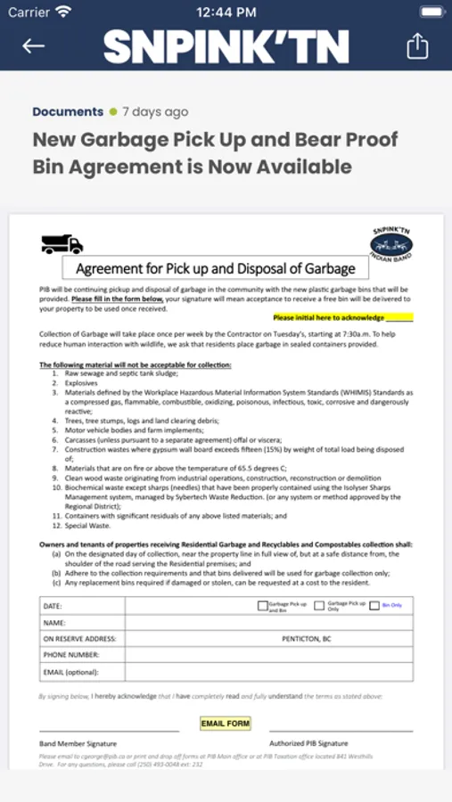 Users can utilize native iOS functionality to quickly and easily add posted events to their device calendar with one tap, as well as receive push notifications. Connect directly to the Band Office – submit requests, information, and questions that will be associated with your user account; make your voice heard! Authorize or reject documents sent by the Band Office, and issue corrections.