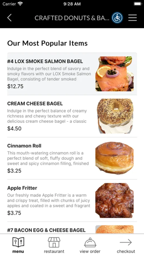 Order from Crafted Bagels & Donuts. Now you can save and reorder, save custom menu items and order with a snap!
