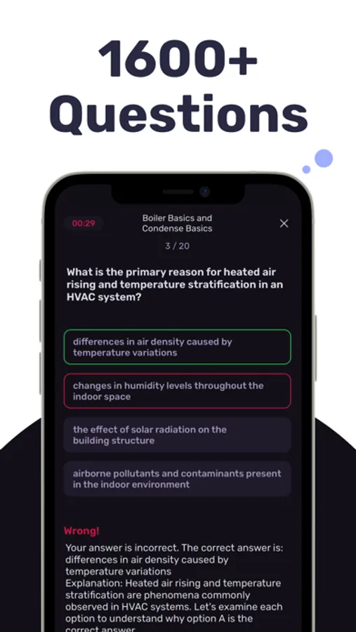 Swipe the cards to quickly review HVAC concepts without the need to go through the whole test, complete the right amount of questions for you, and get some quick studying in.