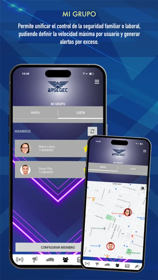 - Seguimiento y monitoreo de tu grupo familiar, ingreso y egreso de geocercas, monitoreo de velocidades máximas, inactividad y estado de batería del celular (MI GRUPO)