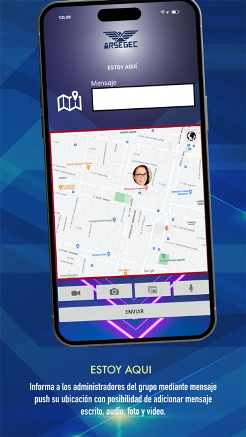 La APP se conecta al centro de monitoreo, en una empresa de seguridad privada o en un organismo público de gobierno y envía alertas con posición en mapa, fotos, audios y clips de video como prueba del suceso.