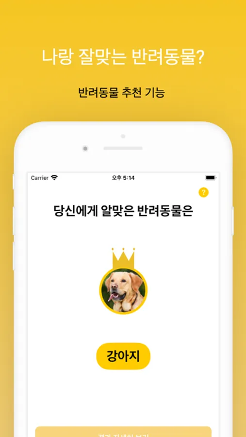 * 해당 앱의 메인이 되는 기능으로 질문에 대한 사용자의 응답을 가장 궁합이 잘 맞는 동물을 제시해 주시길 바랍니다.