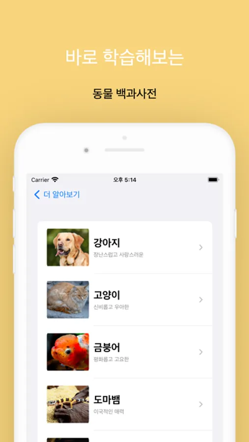* 백과 사전에서 자세히 들여다보지 못한 내용들을 영상이나, 이미 키우고 있는 사람들과의 소통을 통해 확인할 수 있습니다.
