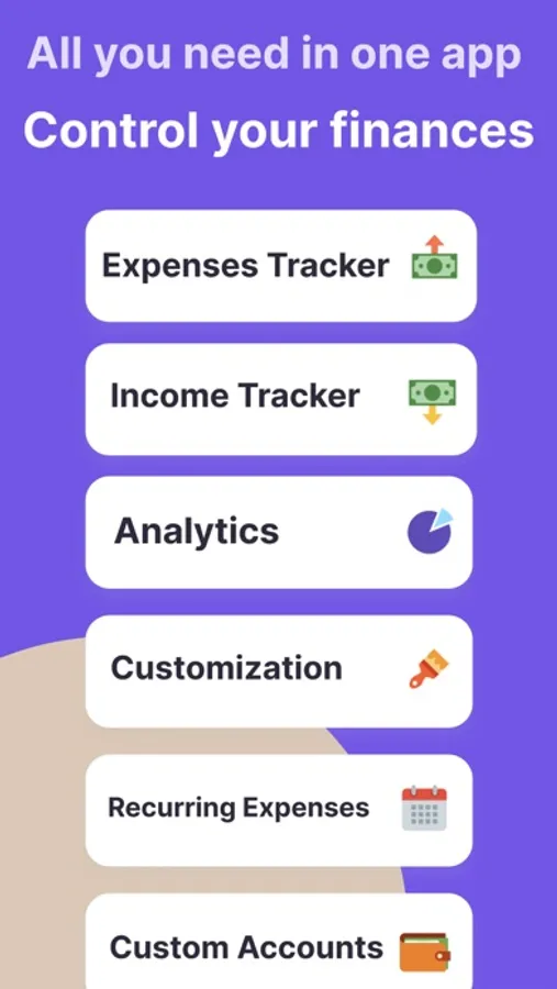 Our sleek, user-friendly app enables you to track your expenses, income, and budgets. Beautiful, easy-to-understand analytics and customization options give you a clear and personalized view of your financial picture.