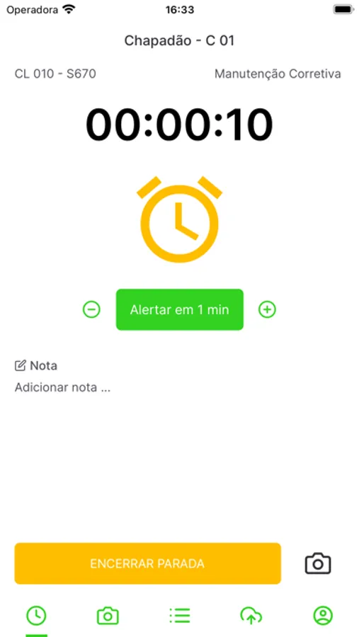 Além disso, o aplicativo permite que os usuários registrem fotos relacionadas a cada evento de parada. Essas fotos podem ser tiradas para documentar problemas específicos, mostrar reparos realizados, registrar condições climáticas adversas ou qualquer outra informação visual relevante para complementar o motivo da parada. Isso proporciona um contexto visual útil para uma melhor compreensão das ocorrências e auxilia na tomada de decisões futuras.