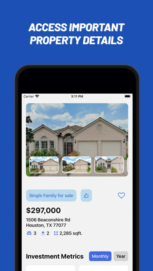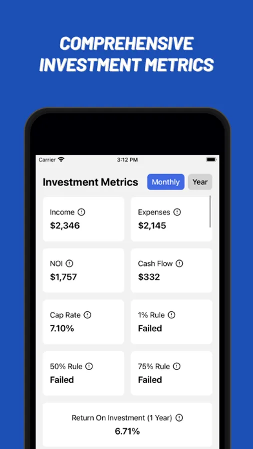 - Gain deep insights into each property's potential by exploring monthly expenses, revenue, and return on investment.