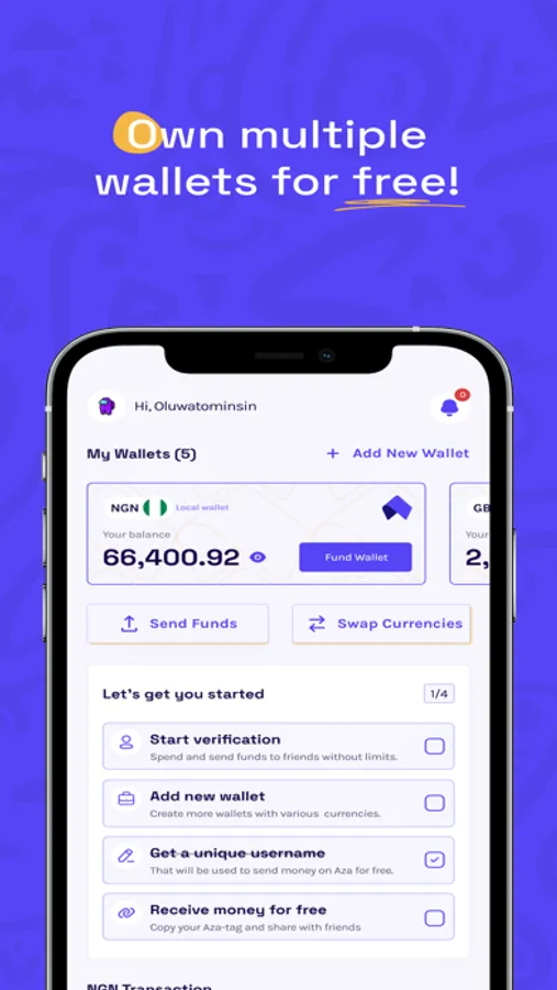 Managing your finances just got simpler with myaza. With myaza, you can easily send and receive money, exchange currencies at competitive rates, and manage your finances with support for 10+ currencies. Plus, enjoy the convenience of a virtual USD card for online shopping.