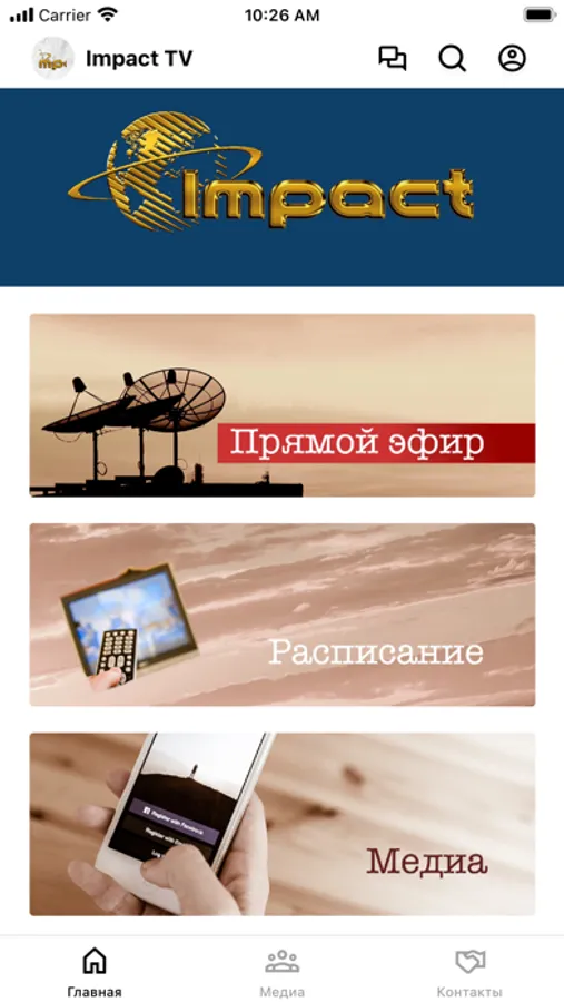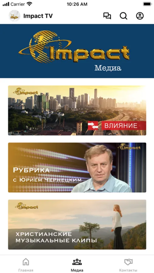The Impact Television Network has grown from a single program "The Power of the Cross" into a 24-hour Slavic family-oriented channel in America. Impact currently broadcasts its programming from Comcast's main network, with coverage throughout the United States and major cities in the former Soviet Union. Use this app to watch previous broadcasts, interviews, and music.