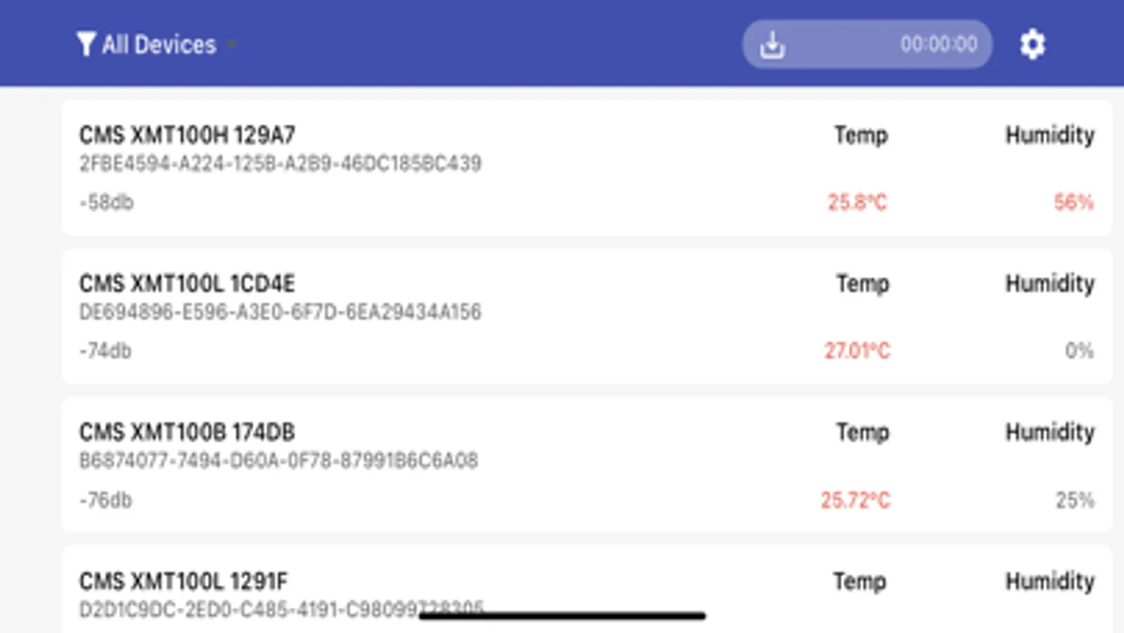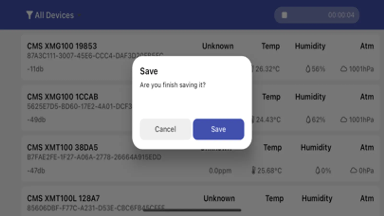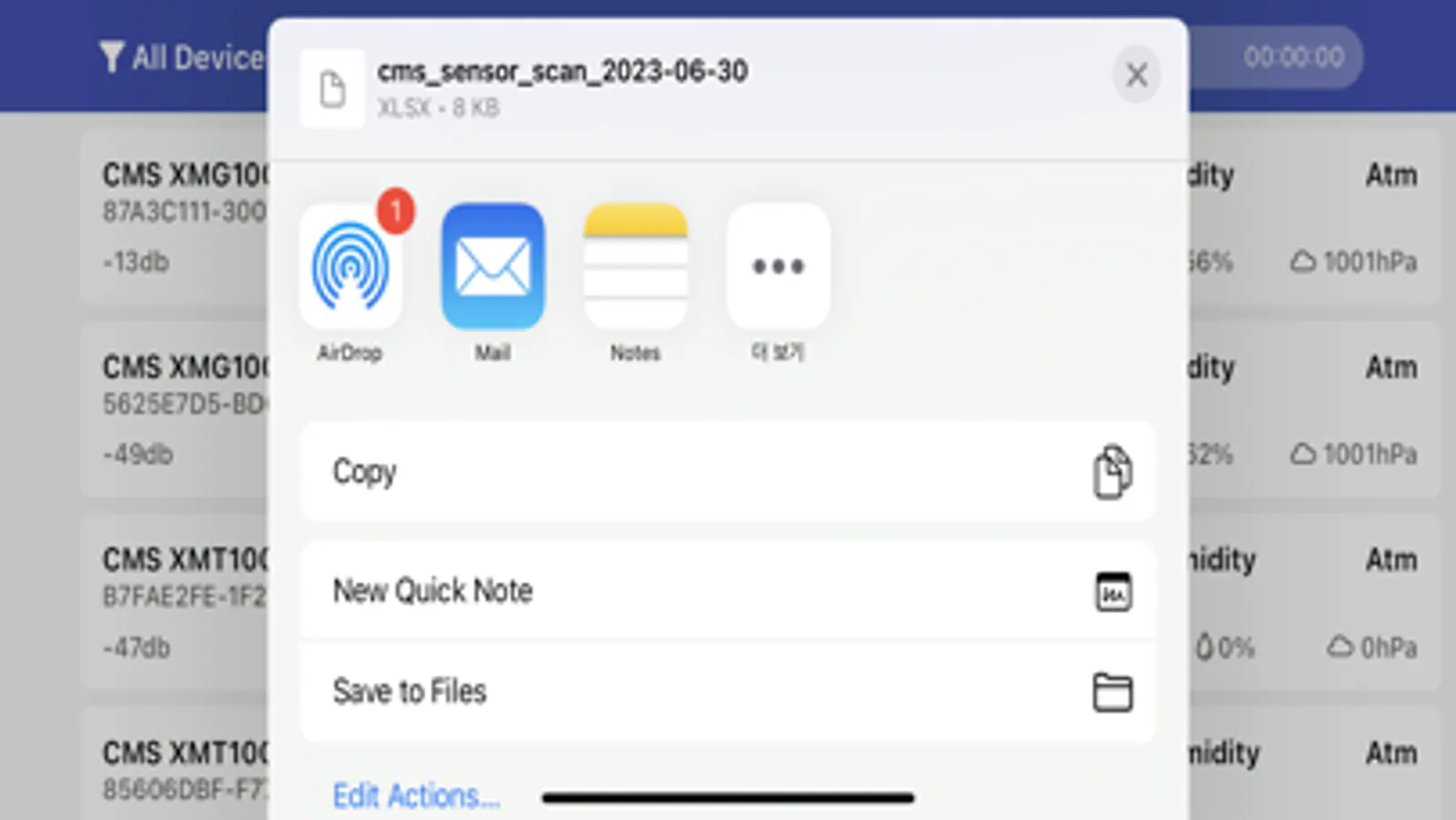 Scans Bluetooth devices to show values, stores data, and shares it as an Excel file