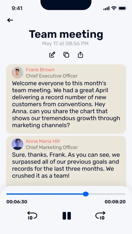 Utilizing cutting-edge Artificial Intelligence technology, AI Transcribe - Voice Recorder serves as a potent tool that converts audio content into accurate and easily understandable transcriptions. With a simple tap, users can promptly transform voice memos, interviews, meetings, lectures, podcasts, and videos into clear, concise text that can be edited, searched, and shared effortlessly.