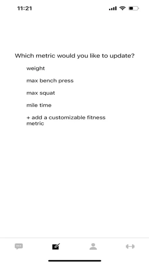 Customizable fitness metrics to strive for goals and log/track numerical measurements over time