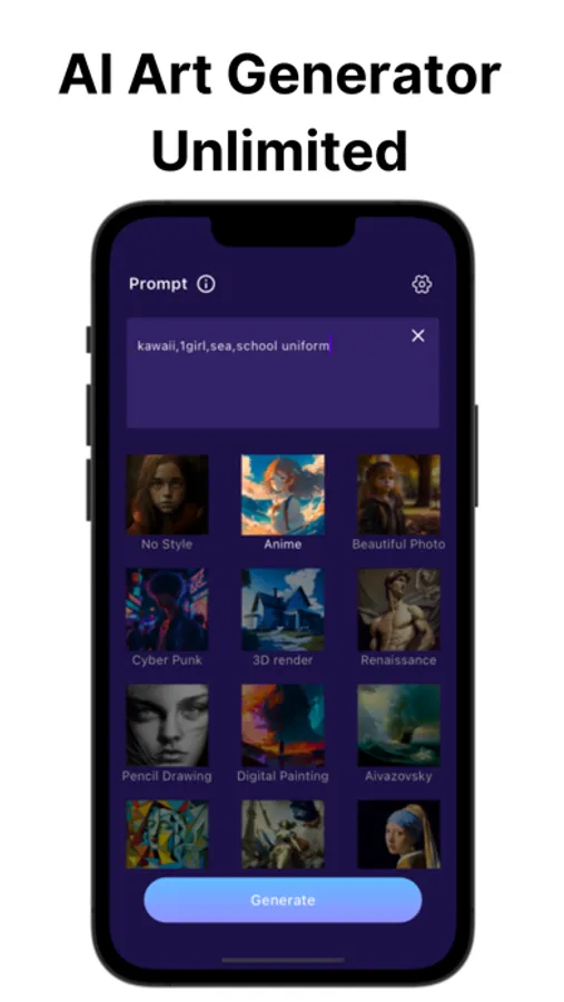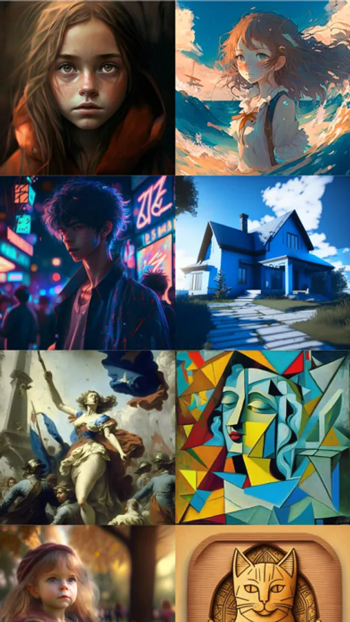 1. choice of image generation models: More than 15 image generation models are provided in this AI image generation app. It can generate Art in different styles and genres, such as cartoon, portrait, cyberpunk, 3D renderer, Renaissance, Picasso, oil painting, pencil drawing style, classical art, Ivazovsky, digital painting, cartoon, detailed photography, studio photography, iconography, etc. Users can choose the appropriate model according to their preferences and objectives.