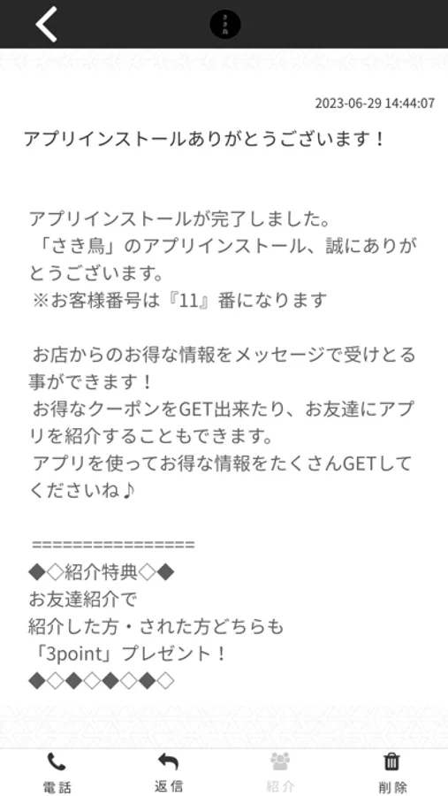さき鳥のアプリをSNSを通じてお友達に紹介する事ができます。