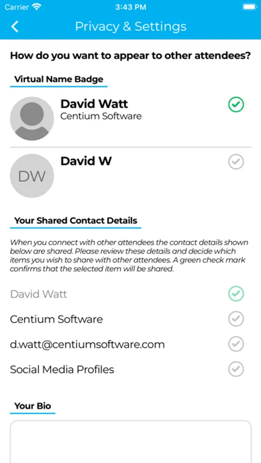 - View a list of attendees, speakers, sponsors and exhibitors, and connect with them with direct in-app messaging