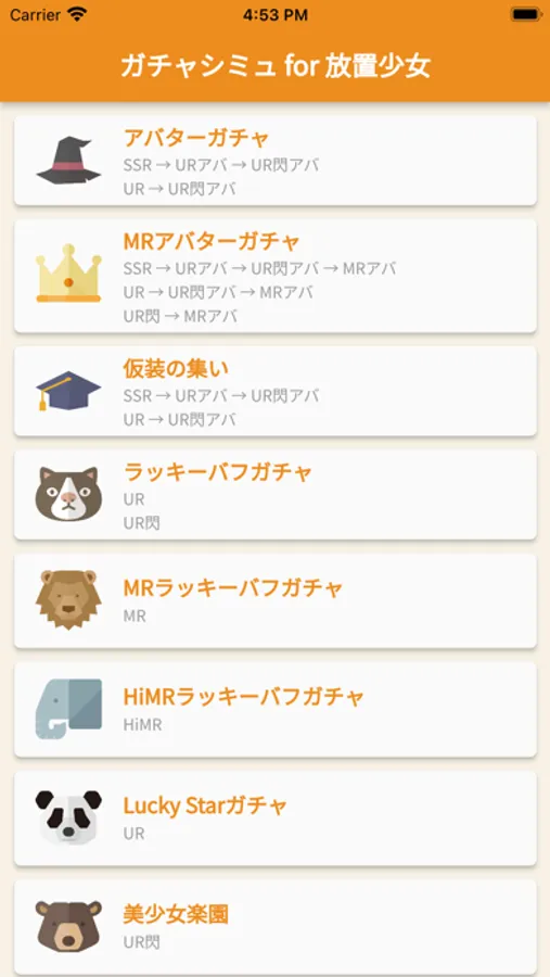 放置少女のガチャの使用元宝の目安を知りたかったら、このアプリを使ってね!